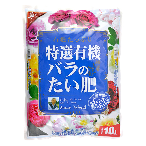 生産者が認める、バラ専用のブレンド。熟成した牛ふんたい肥がバラを丈夫に、健全に育て、花付きをよくします。